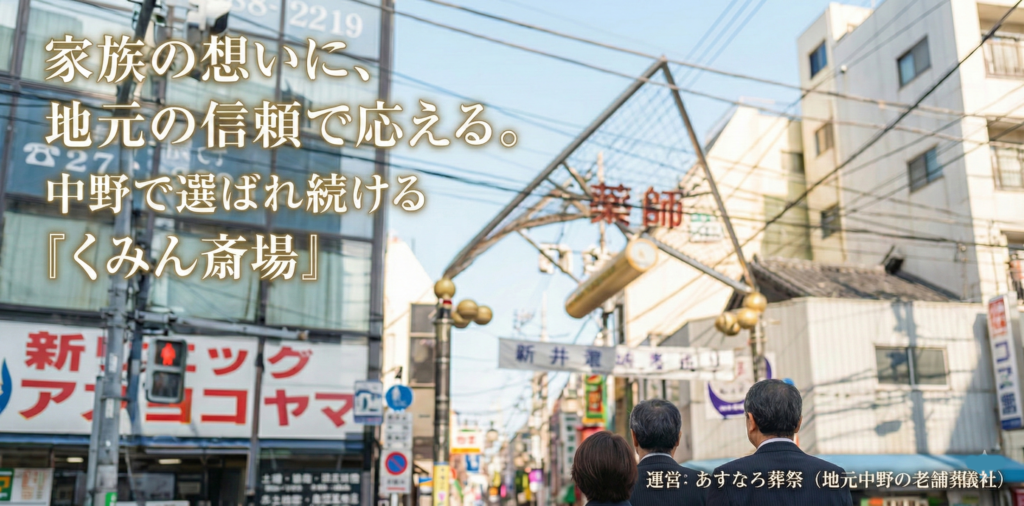中野・新井薬師に根ざして長年歩んできた老舗葬儀社「あすなろ葬祭」が直営。地域のしきたりや事情を熟知したベテランスタッフが、顔が見える安心感で誠実に対応します。