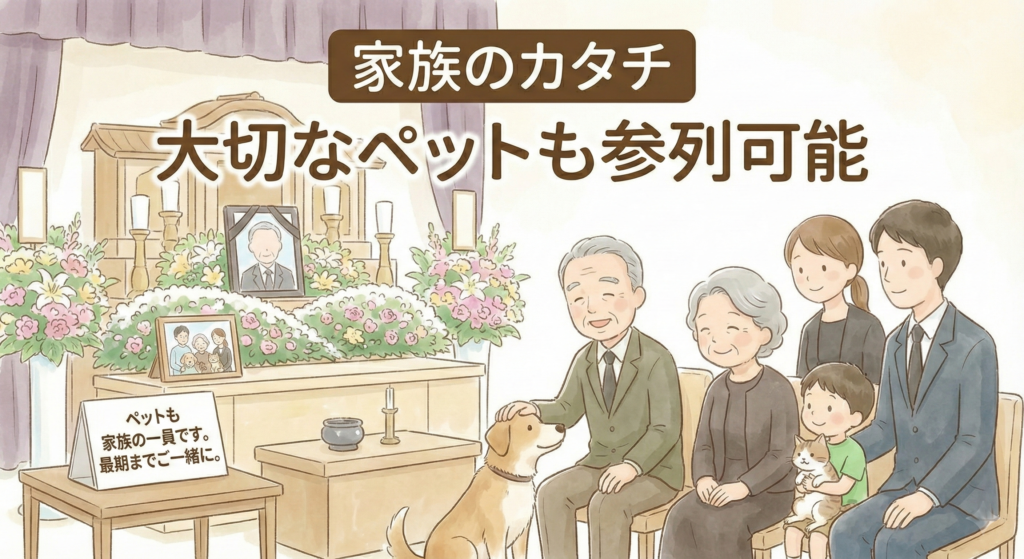 「ペットも大切な家族の一員」という想いに寄り添います。お留守番させることなく、最後のお別れまでずっと一緒にいてあげてください。