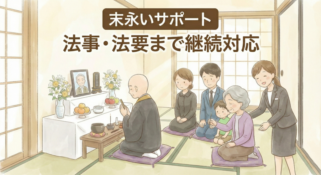 お葬式の後も、七七日(四十九日)や一周忌の会場としてご利用いただけます。慣れ親しんだスタッフが、その後も変わらずサポートいたします。【中野区での法要式場詳細はこちら】